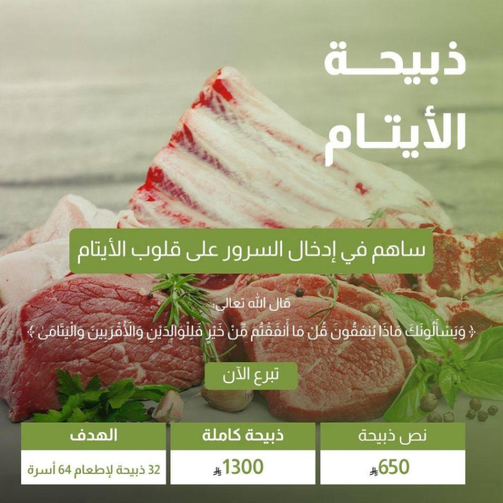 نستهدف في هذه الحملة توفير 32 ذبيحة، يتم تقطيعها وتغليفها وتوزيعها بعناية لتصل إلى 64 أسرة من أسر الأيتام المسجلين لدى الجمعية، لنكفيهم مئونة الطعام ونرسم البسمة على وجوه أطفالهم.