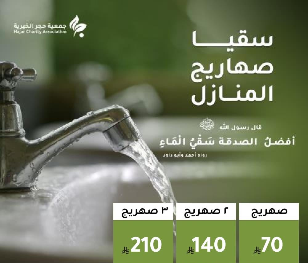 بتبرع 70 ريالاً فقط، تساهم في كفالة سقيا منزل لمدة شهر كامل، لتكون أنت النهر الذي يروي بيوت المحتاجين.